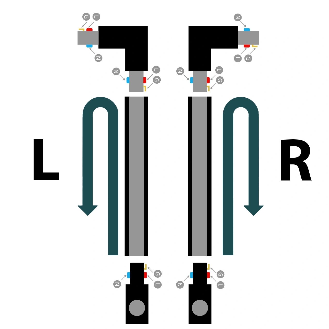 Postavte sa na miesto, kde plánujete krížiť koľajnice, a postavte sa tvárou k bodu, kde napájací kábel vychádza zo stropu. Potom určte, ktorým smerom sa má druhá koľajnica natočiť vzhľadom na vašu polohu. Tento spôsob vám umožní vybrať správny konektor bez rizika zámeny a priamo súvisí so skutočnou inštaláciou.