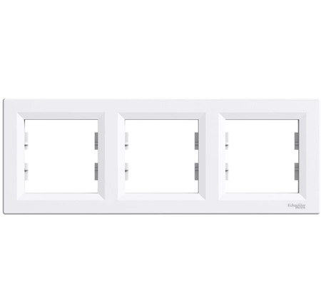 Trzykrotna ramka w kolorze białym marki Schneider Electric z serii Asfora została wyprodukowana z wysokiej jakości materiałów, które mają zwiększoną odporność na UV. Powoduje to, że ramka nie odbarwia się podczas padania na nią promieni słonecznych. Dodatkową zaletą tego produktu jest elastyczność ramki, dzięki temu doskonale przylega do ściany, nawet w przypadku wystającej puszki.
