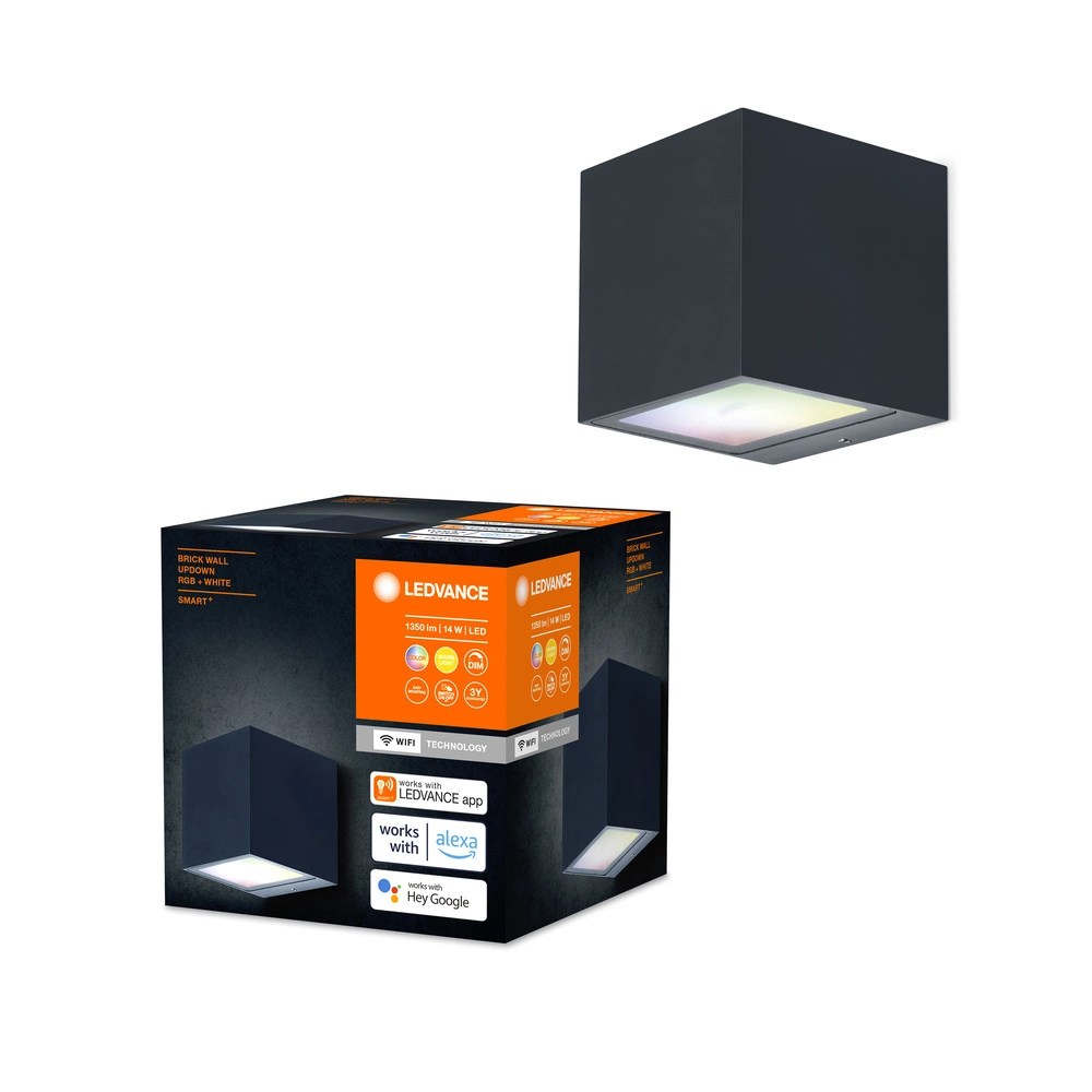 Vonkajšia záhradná lampa Vonkajšia nástenná LED lampa 14W 550lm 3000K, teplá biela RGBW Top Down Stmievateľné IP44 Grey SMART+ WiFi Brick Ledvance