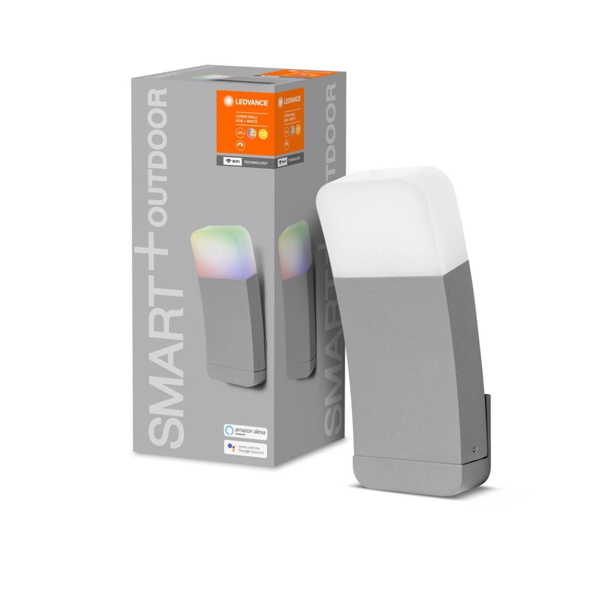 Vonkajšia záhradná LED lampa Vonkajšia nástenná lampa 10W 550lm 3000K, teplá biela RGBW Stmievateľná IP44 Silver SMART+ WiFi Curve Ledvance