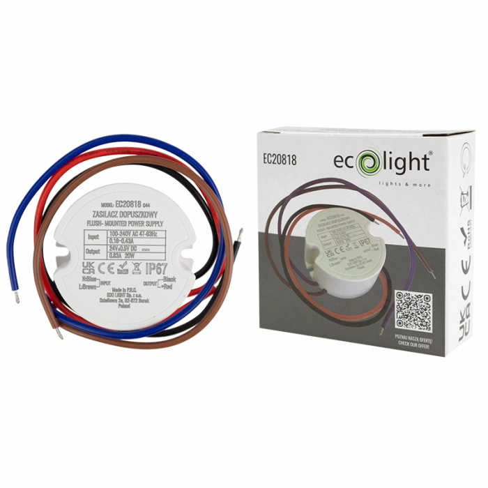 Predstavujeme napájací zdroj FI60 LED pásik 20W, ktorý navrhla renomovaná spoločnosť ECO LIGHT. Tento hermetický napájací zdroj sa vyznačuje vysokým stupňom krytia IP67, ktorý umožňuje jeho použitie v náročných vonkajších podmienkach a chráni zariadenie pred vodou a prachom. Napájací zdroj pracuje so vstupným napätím 100 - 240 V AC, vďaka čomu je mimoriadne univerzálny, čo mu dáva možnosť dodávať energiu v rôznych krajinách a prostrediach. Na druhej strane výstupné napätie je 24 V DC pri 0,83 A, vďaka čomu je ideálny na stabilné napájanie LED pásikov, čo zaručuje dlhodobú a bezproblémovú prevádzku.