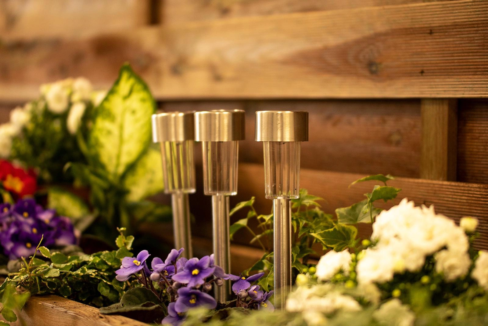 dekorácia umiestnená medzi kvetinami alebo trávnikom