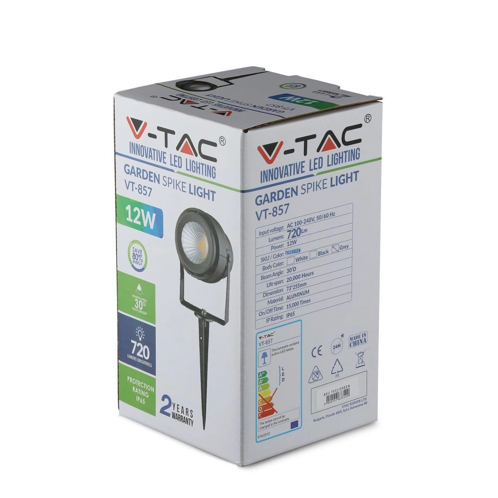 Lampa Ogrodowa Reflektor 12W Zielone światło Wbijany Regulowany Szary VT-857 V-TAC