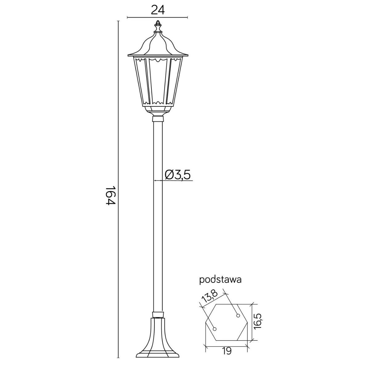 Lampa Ogrodowa Zewnętrzna Słupek LATARNIA E27 Retro Classic K 5002/1 164cm czarny Su-Ma
