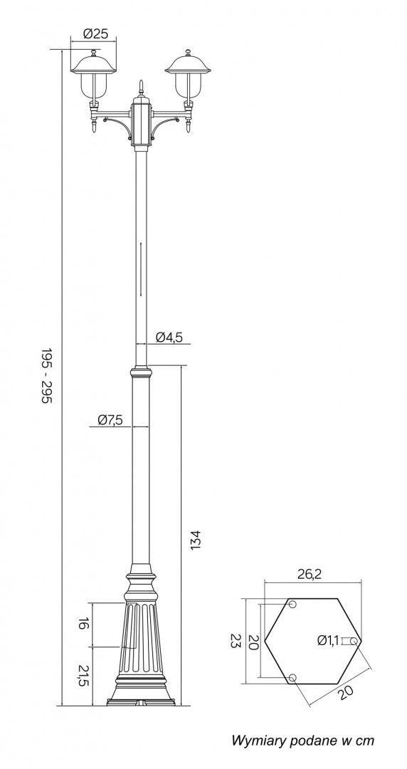 Lampa Ogrodowa Zewnętrzna Słupek LATARNIA E27 Prince OGMWN 2 O 195-295cm czarny Su-Ma