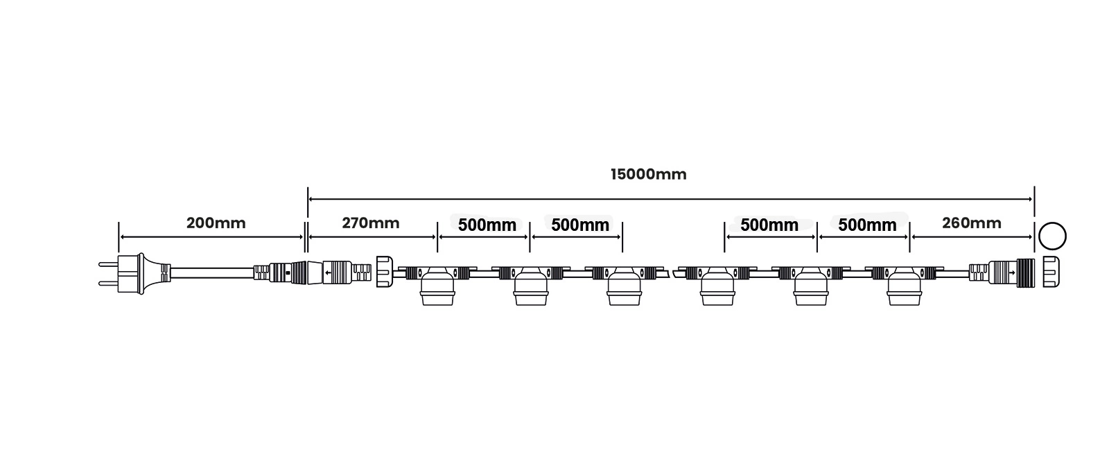 - Girlandu je možné pripojiť až do maximálnej dĺžky 40 metrov pomocou hermetického konektora