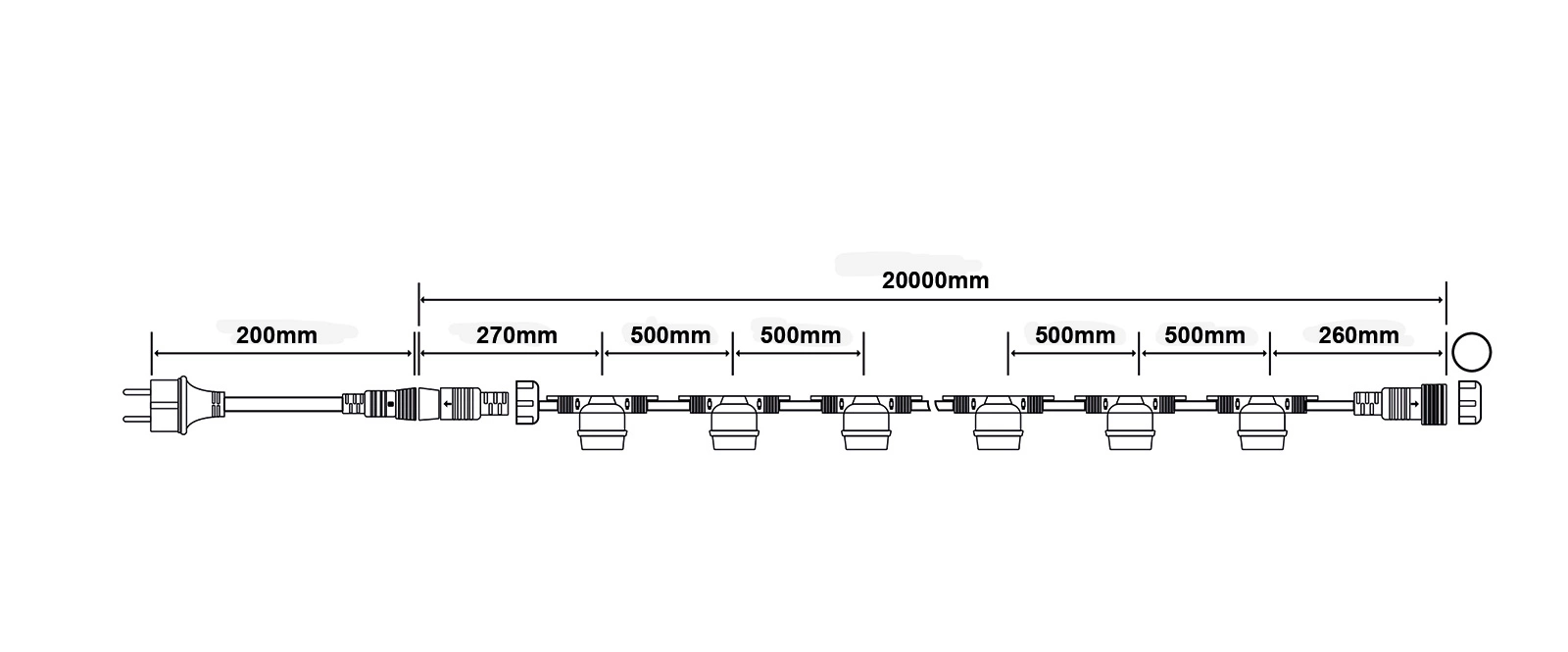 - Możliwość łączenia girland do maksymalnie 40 metrów, za pomocą hermetycznego złącza