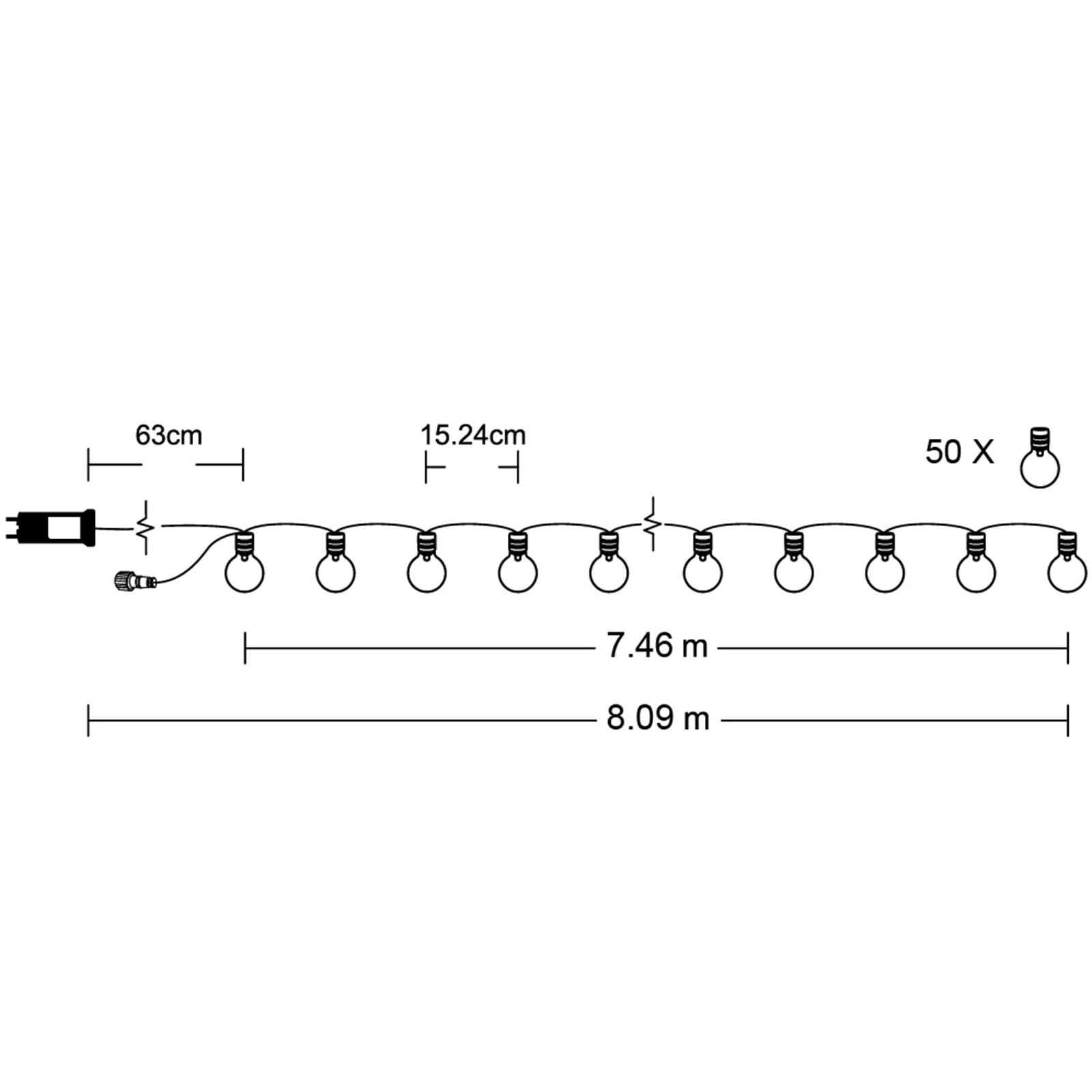 Girlanda je vybavená úspornými žiarovkami vyžarujúcimi teplú farbu svetla ( 3000 K), ktoré vytvárajú útulnú atmosféru. Tento typ osvetlenia prispieva k relaxácii a vytvára atmosféru - je ideálny na večerný oddych na terase, ako aj na romantické stretnutia v záhrade. Každá žiarovka je vyrobená z odolného nerozbitného materiálu, čo výrazne zvyšuje bezpečnosť pri používaní. Girlanda je preto odolná voči náhodným pádom a nárazom a jej trvanlivosť a spoľahlivosť vám umožní užívať si krásne svetlo dlhý čas.