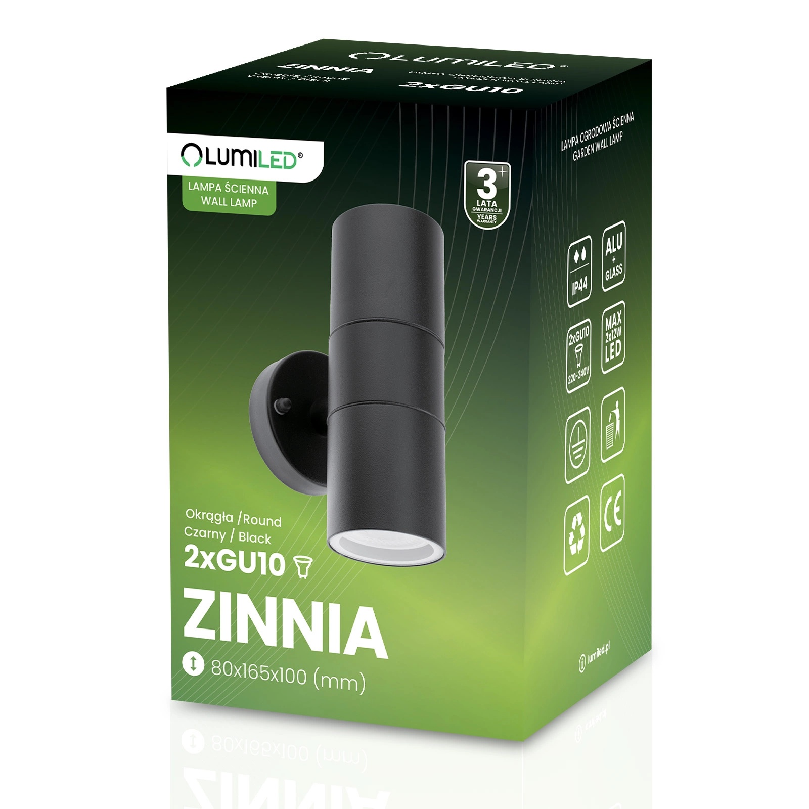 Záhradné nástenné svietidlo, nástenný svietnik v čiernej farbe zo série ZINNIA od spoločnosti LUMILED sa vyznačuje predovšetkým moderným dizajnom a bezproblémovou inštaláciou. osvetlenie je elegantné a praktické svetlo, ideálne na použitie mimo domu. Je určené na povrchovú montáž na fasády budov.