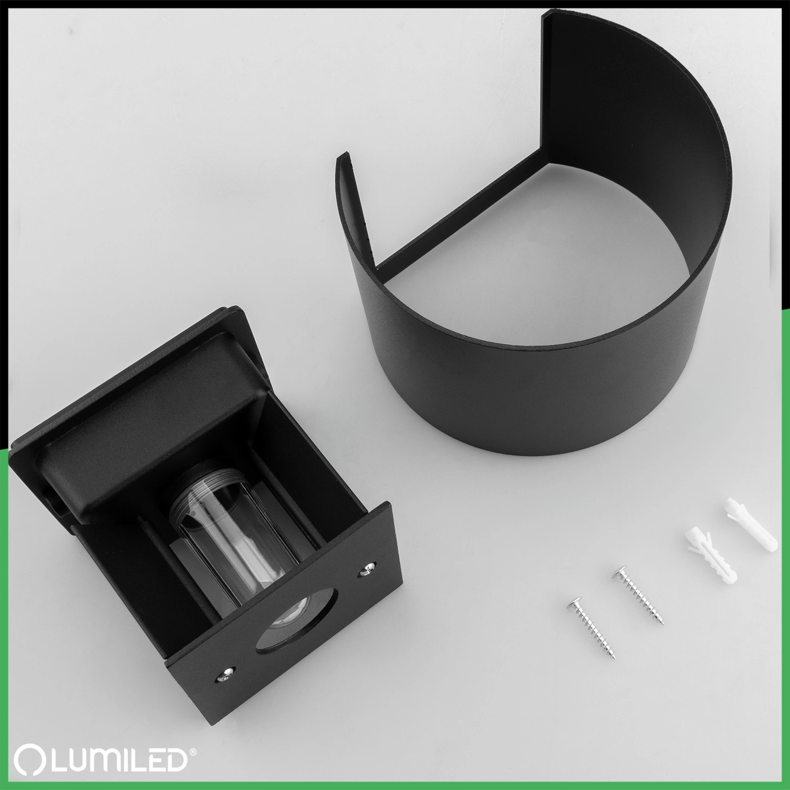 Záhradné nástenné svietidlo, nástenný svietnik v čiernej farbe zo série PYXIS od spoločnosti LUMILED sa vyznačuje predovšetkým moderným dizajnom a bezproblémovou inštaláciou. Svietidlo predstavuje elegantné a praktické osvetlenie, ideálne na použitie mimo domu. Je určené na povrchovú montáž na fasády budov.