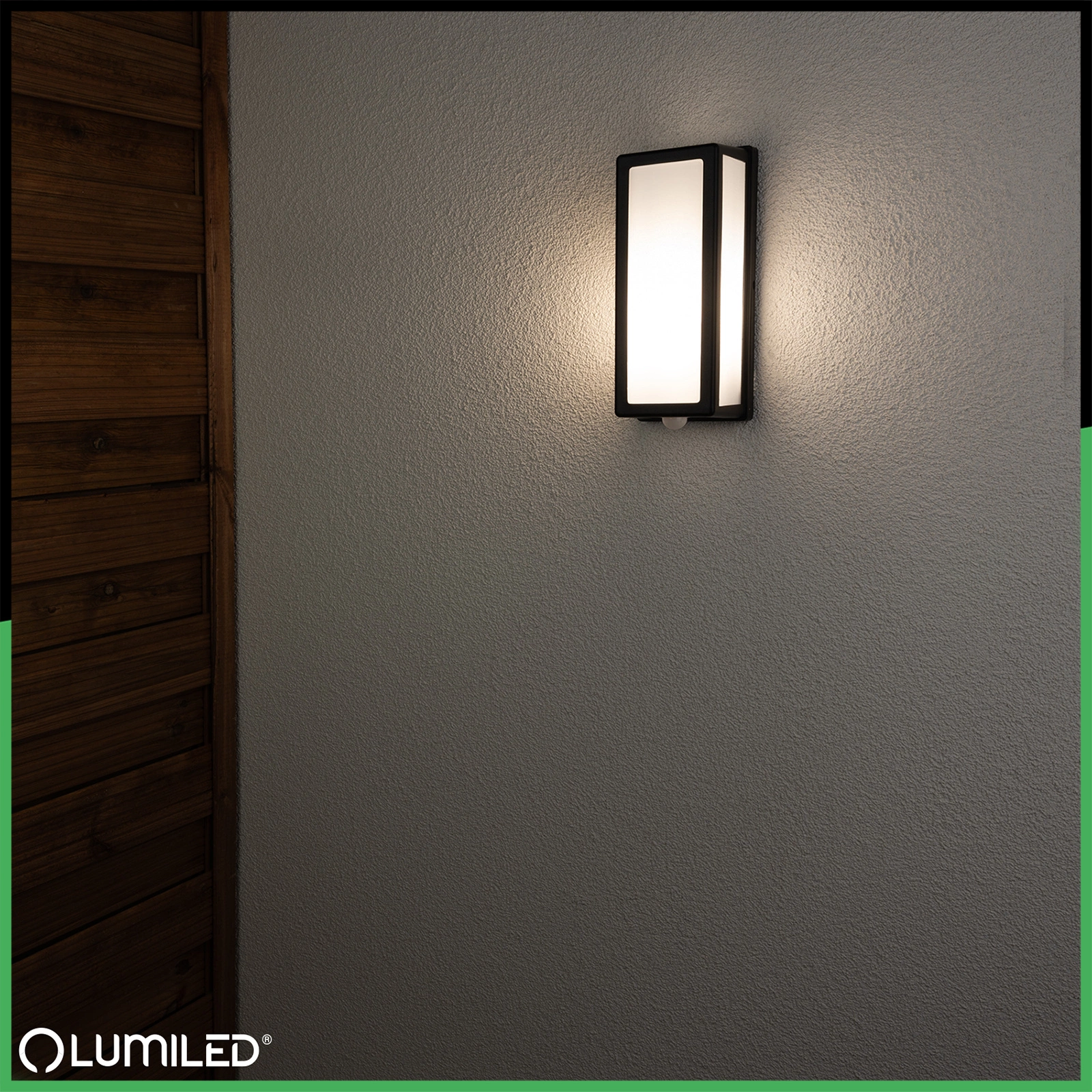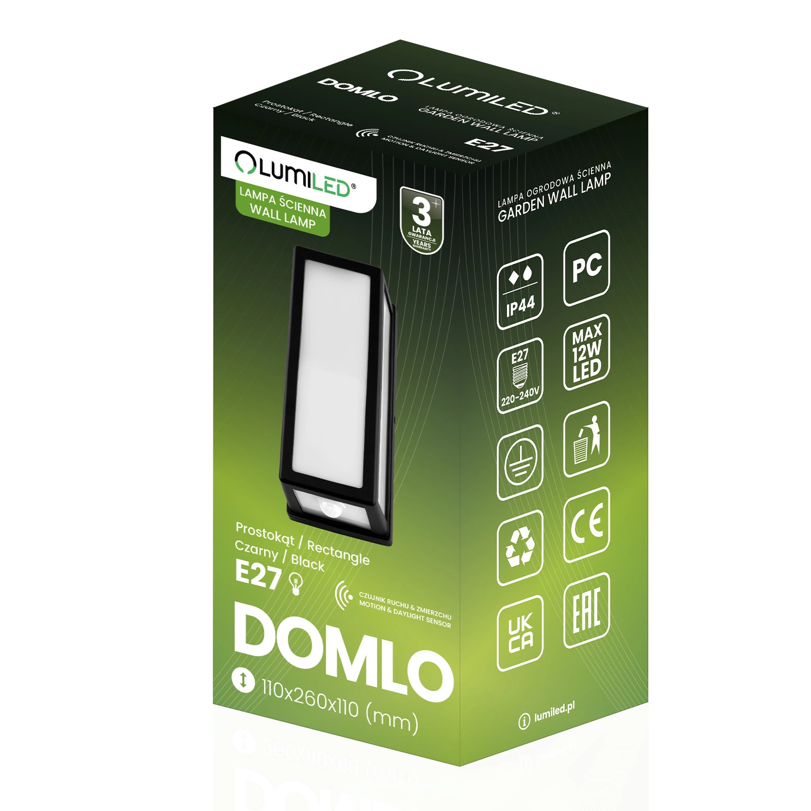 Záhradné nástenné svietidlo v čiernej farbe zo série DOMLO od spoločnosti LUMILED sa vyznačuje predovšetkým moderným dizajnom a bezproblémovou inštaláciou. Svietidlo predstavuje elegantné a praktické osvetlenie, ideálne na použitie v exteriéri. Je určené na povrchovú montáž na fasády budov.