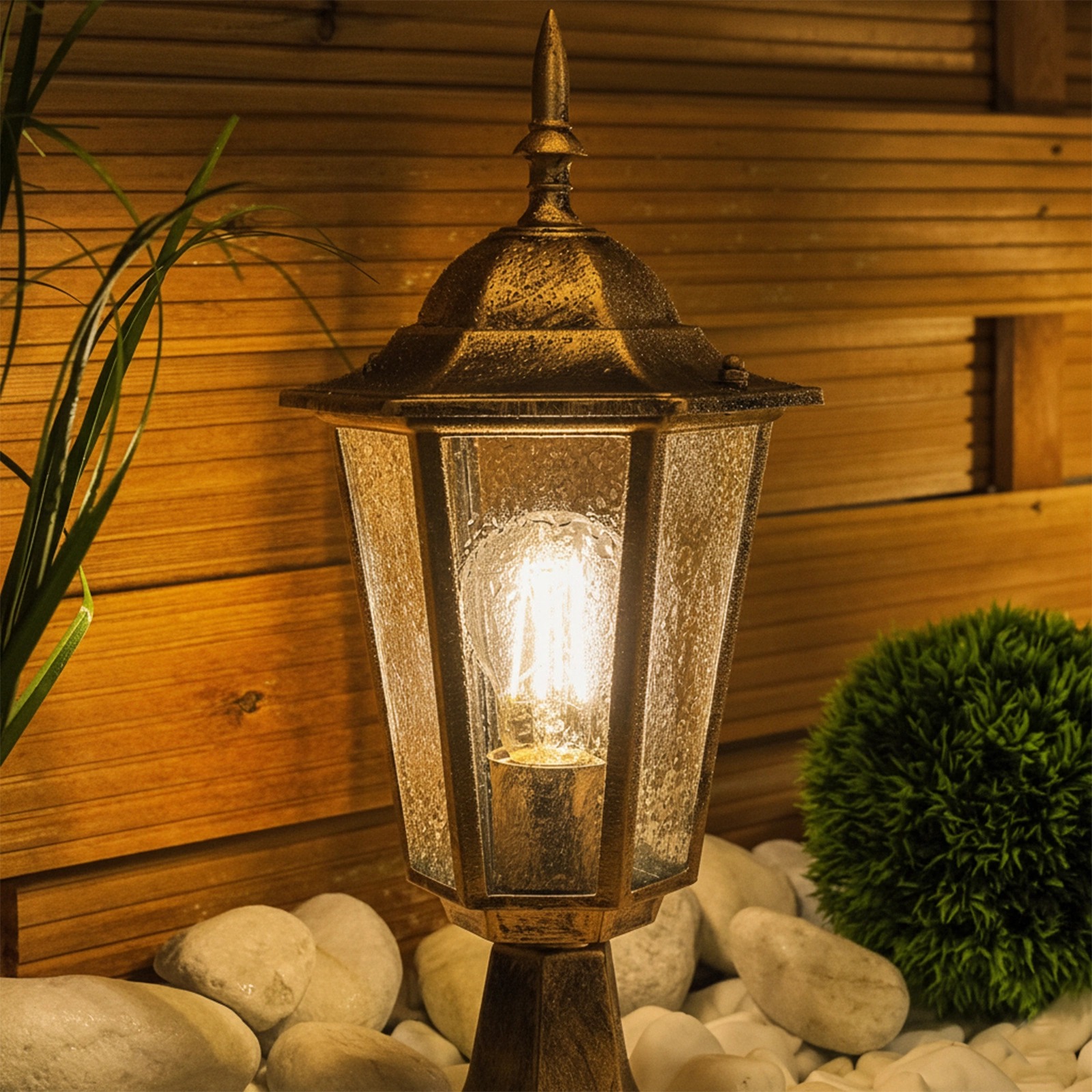 Záhradné svietidlo zo série BELLIS od spoločnosti LUMILED mothers je elegantným doplnkom každej záhrady. Farba patiny, ktorá je štylizovaná ako starobylé zlato, mu dodáva klasický šarm a dokáže sa krásne zladiť s okolím, najmä s prírodnými prvkami, ako je vegetácia alebo kameň.