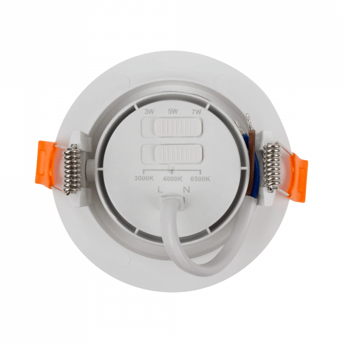 Premyslite si svoje osvetlenie s moderným svietidlom DOWNLIGHT na zapustenie od spoločnosti Ecolight! Toto elegantné kruhové LED svietidlo v klasickej bielej farbe je zárukou štýlu a všestrannosti, ktorá dokonale zapadne do každého interiéru. Vďaka možnosti výberu farby svetla (od teplej bielej 3000 K, cez neutrálnu 4000 K až po studenú 6500 K) a nastaviteľnému svetelnému výkonu (3 W, 5 W, 7 W) môžete upraviť atmosféru miestnosti presne podľa svojich potrieb. Vďaka intuitívnemu systému spínačov máte všetko pod kontrolou a inštalácia pomocou montážnych pružín je rýchla a jednoduchá.