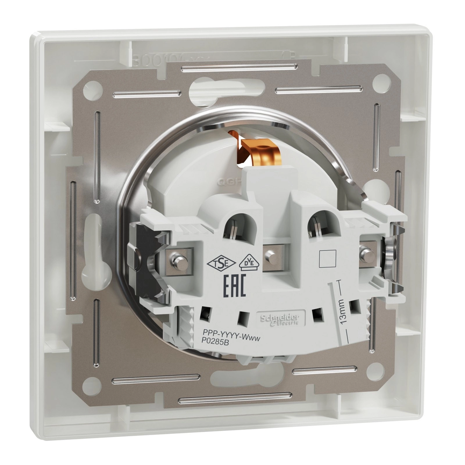 Standardowe Gniazdo Elektryczne Pojedyncze z bocznymi stykami uziemiającymi w kolorze białym, do montażu podtynkowego. Prezentowane Gniazdko służy do podłączania urządzeń elektrycznych. Mechanizm posiada czytelny schemat oraz oznaczenie zacisków ułatwiające podłączenie. Osprzęt wykonany został z wysokogatunkowego tworzywa sztucznego. Bardzo dobrze dopasowane przyciski i elementy obudowy zapewniają bezpieczne użytkowanie przez długie lata. Etykieta Green Premium jest zobowiązaniem firmy Schneider Electric do dostarczania produktów o najwyższej w swojej klasie ekologiczności.