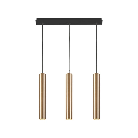 Predstavujeme vám moderné závesné stropné svietidlo, ktoré dodá eleganciu každému interiéru. Je vyrobené z odolných materiálov, ako je mosadz a oceľ, v módnych zlatých a čiernych farbách a dokonale zapadne do moderného štýlu. Svietidlo využíva tri vymeniteľné svetelné zdroje s maximálnym výkonom 10 W, každý s päticou GU10. Vďaka tejto funkcii môžete osvetlenie ľahko prispôsobiť svojim potrebám.