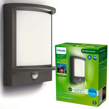 Záhradné nástenné svietidlo Vonkajšie fasádne svietidlo LED 3,8 W 800 lm 2700 K so senzorom pohybu a súmraku Antracit Samondra Ultra Efficient Philips